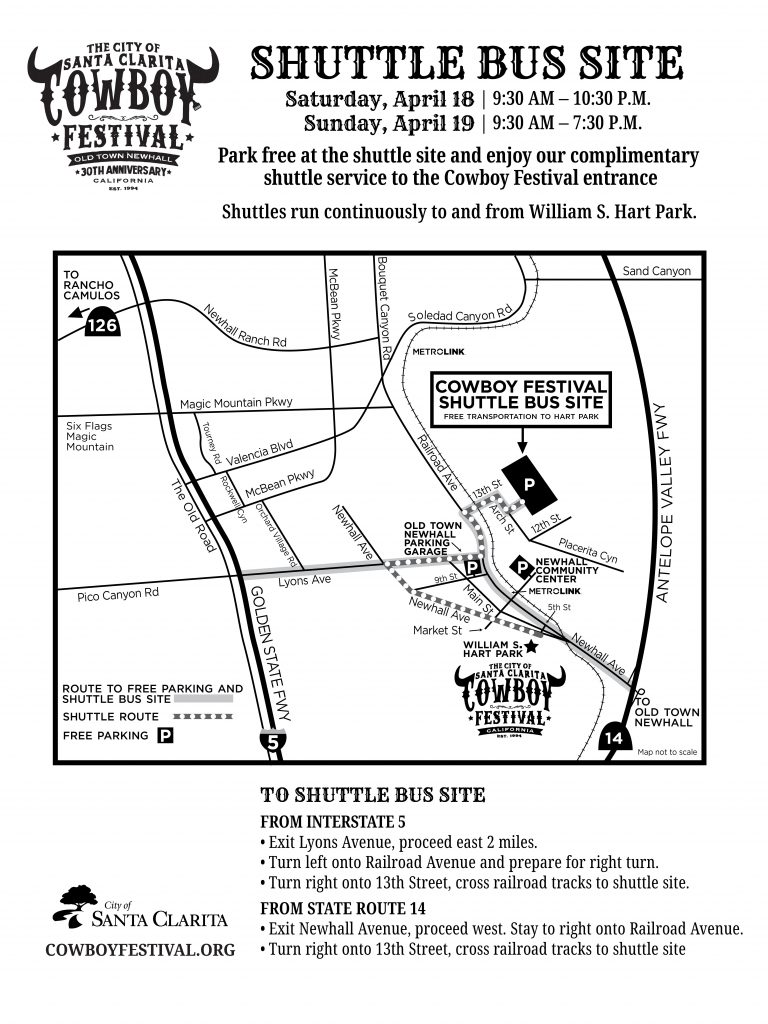 • If you’re dressed in western wear, Santa Clarita Transit is offering FREE rides on Routes 4/14, 5/6, and 12 during Cowboy Festival weekend!