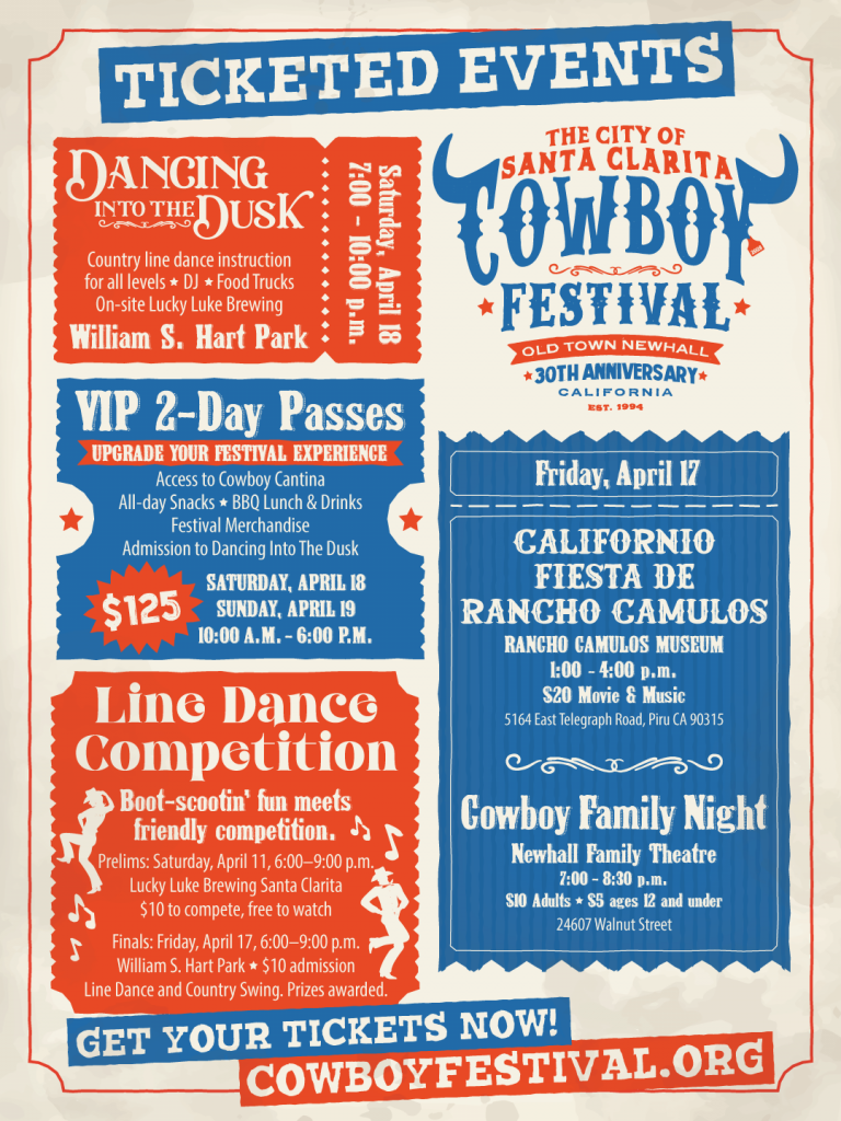 Round up your friends and get ready for a night of dancing, games and good vibes at Dancing Into the Dusk, a late-night event at the Santa Clarita Cowboy Festival. Line dance instruction will be available throughout the night, so you can jump in and learn the moves whenever you’re ready. Hit the dance floor and stomp along to a DJ spinning crowd favorites for country swing, two-step and line dancing. Lucky Luke Brewing will be serving beer, wine, and seltzers, and food trucks will be on site so you can grab a bite, recharge and head back to the dance floor.