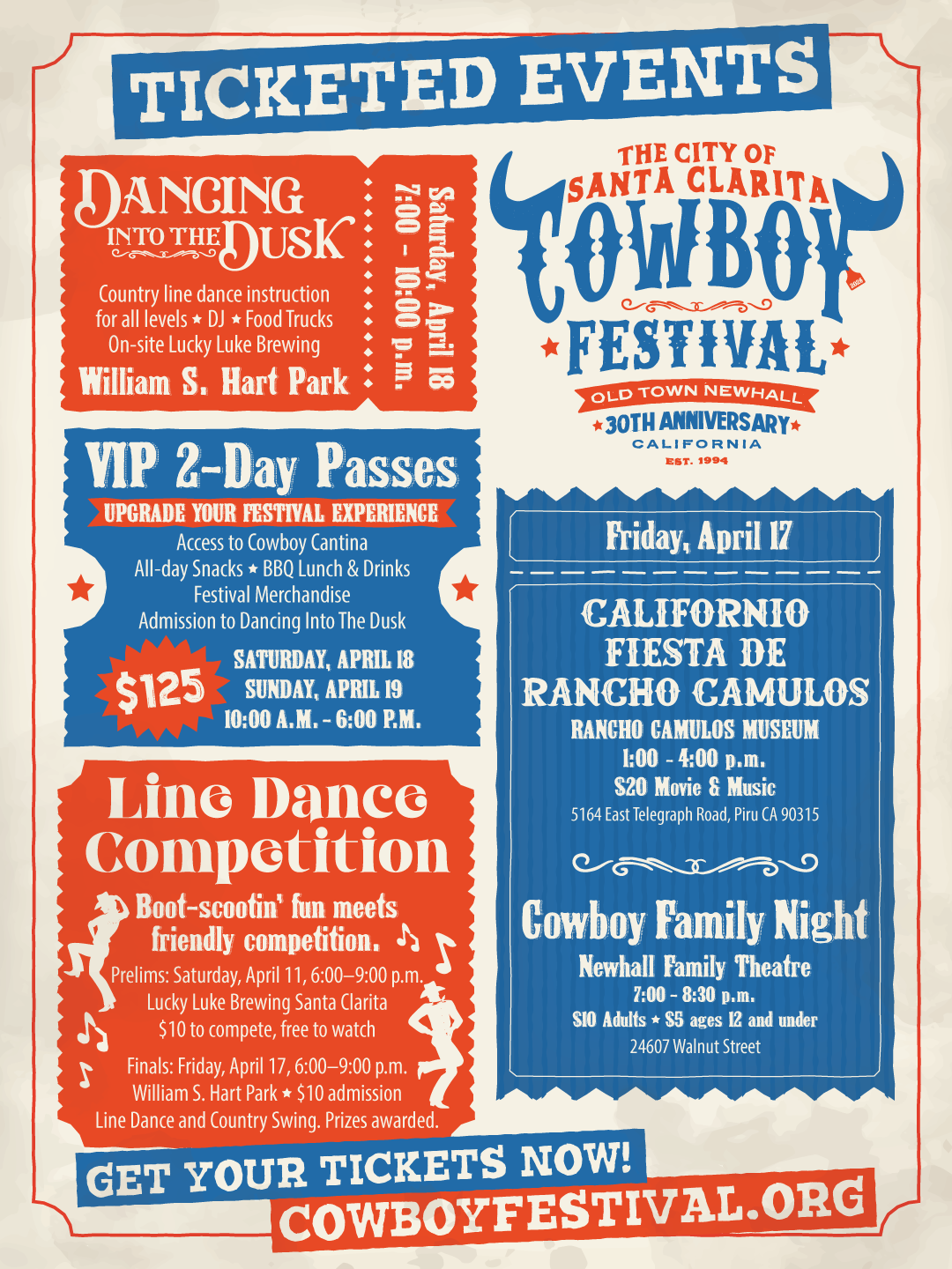 Take your Cowboy Festival weekend to the next level with ticketed events and VIP passes that let you customize your experience beyond the main festival days. From high-energy line dancing and honky-tonk nights to intimate concerts, family-friendly gatherings and off-site historic experiences, these add-ons are designed to help you build a Cowboy Festival experience that’s uniquely yours